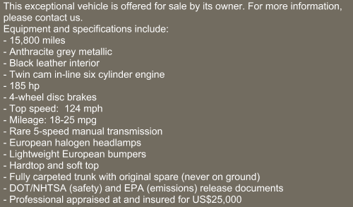 Updates/upgrades/notable features: - 185 hp twin cam six (also used in U.S. versions) - Full maintenance records - Mercedes-Benz battery